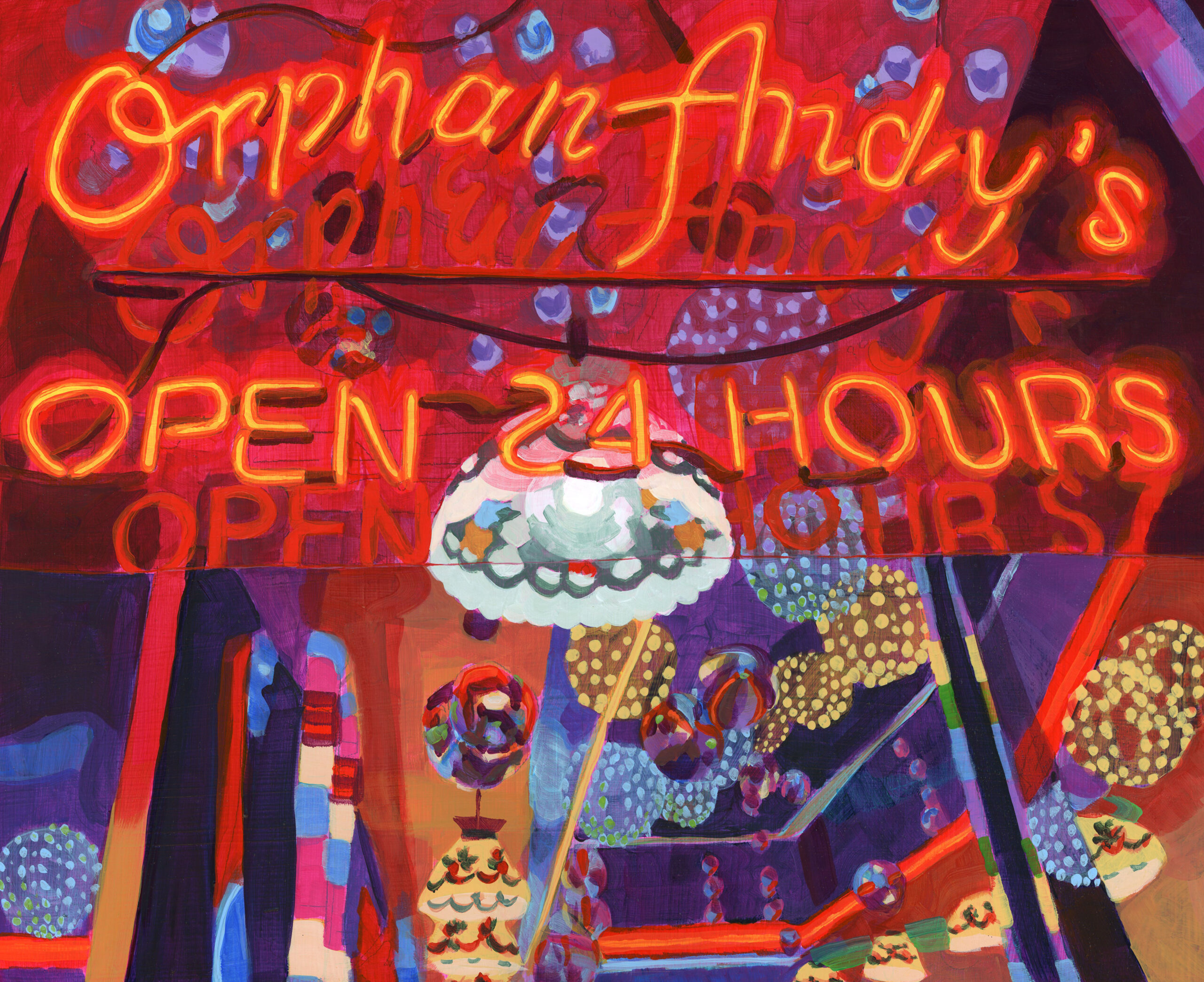 Orphan Andy’s Neon, acrylic on panel, 16″x20″
