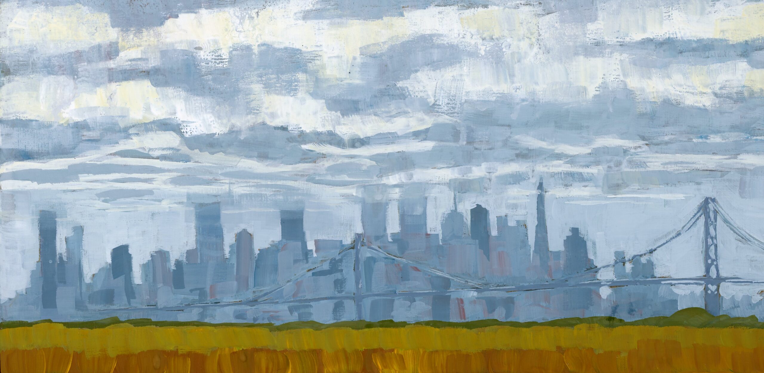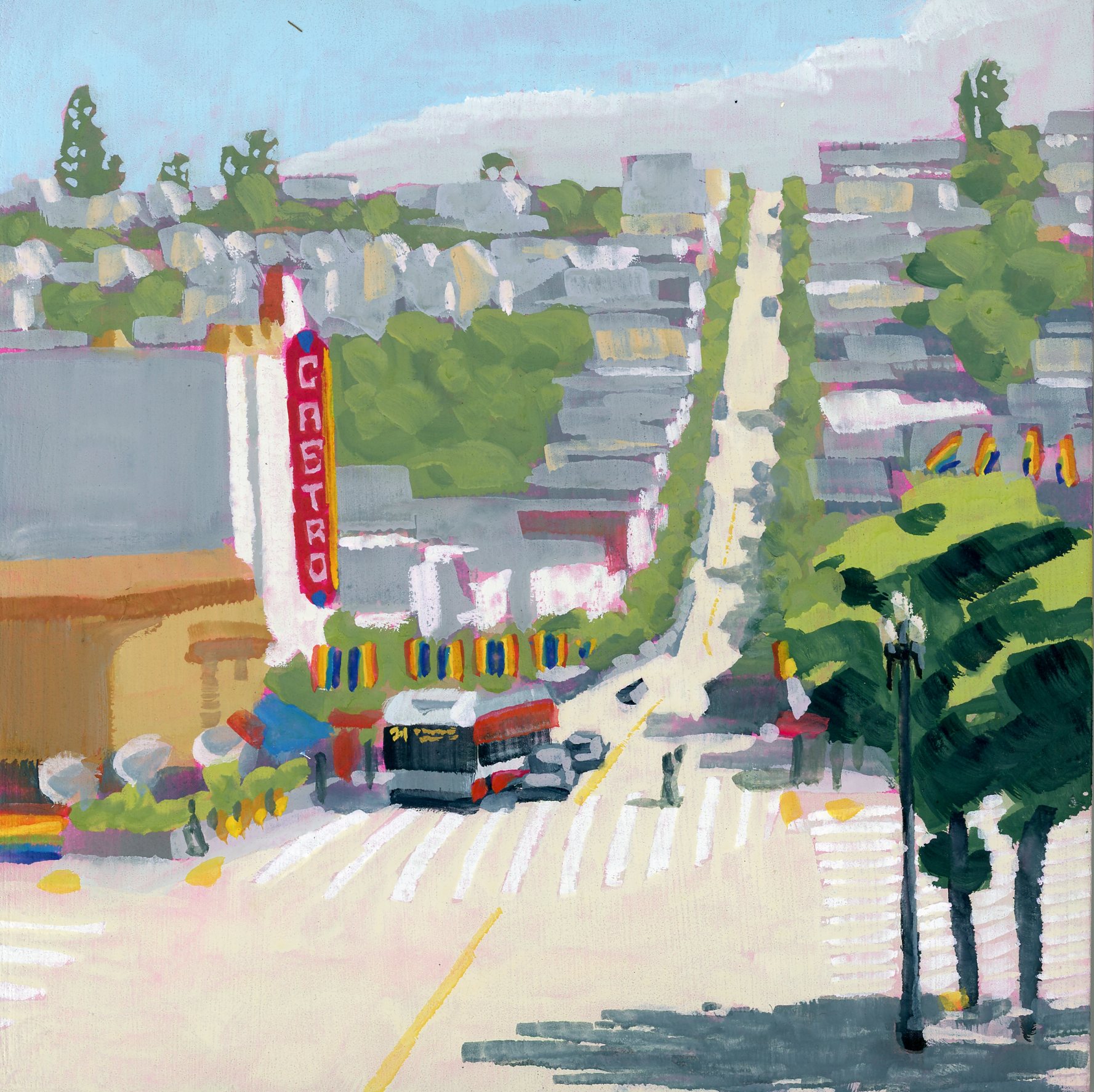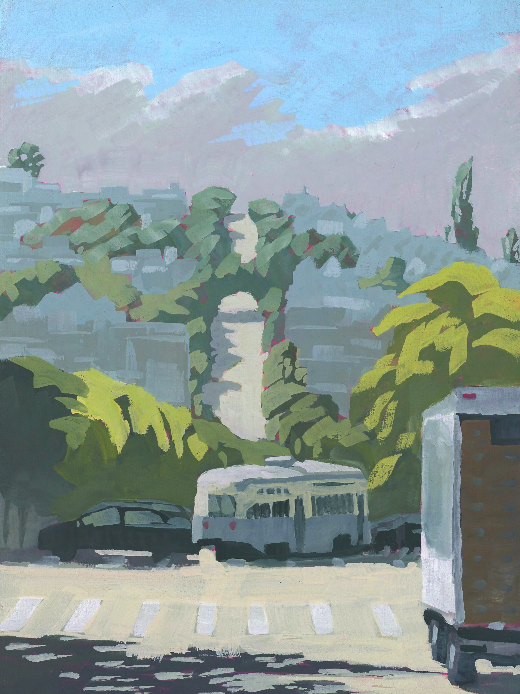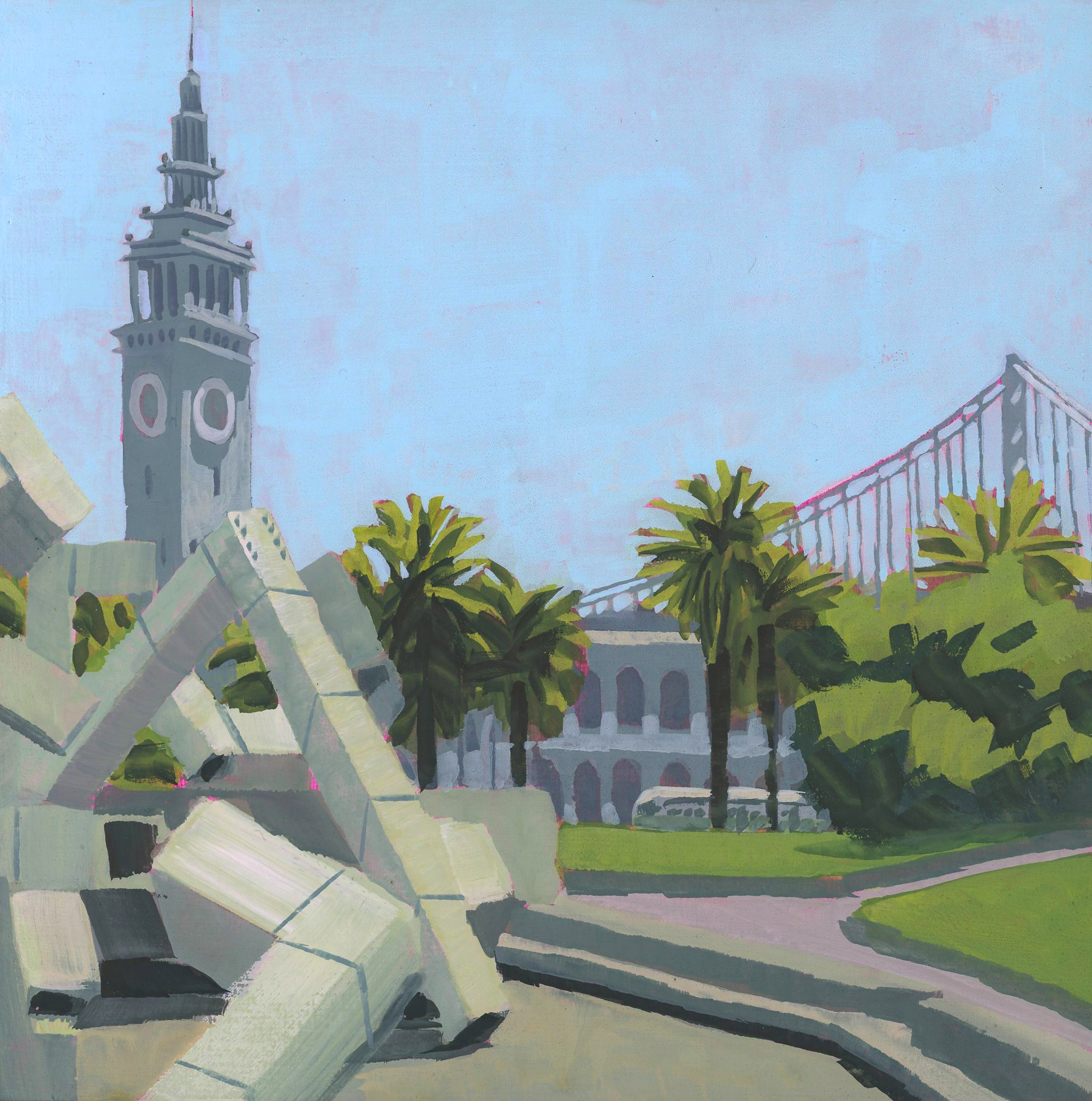 My paintings explore and celebrate the natural and built environments of the San Francisco Bay Area through simplification, light, and atmosphere. Most are painted en Plein Air with gouache. The first set of paintings are available, I also accept commissions for locations around the Bay Area.