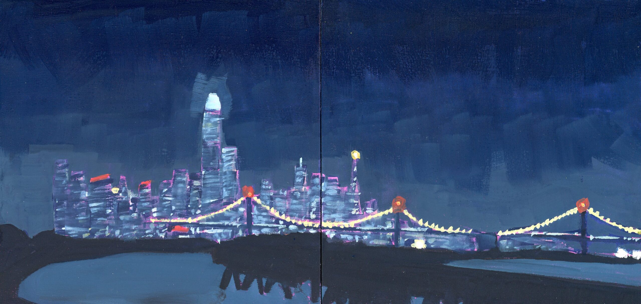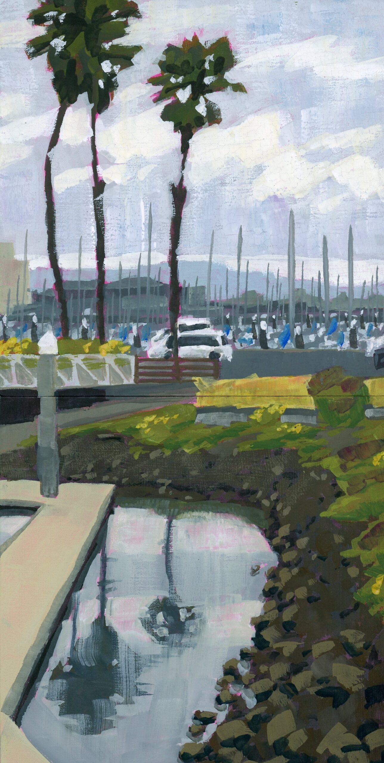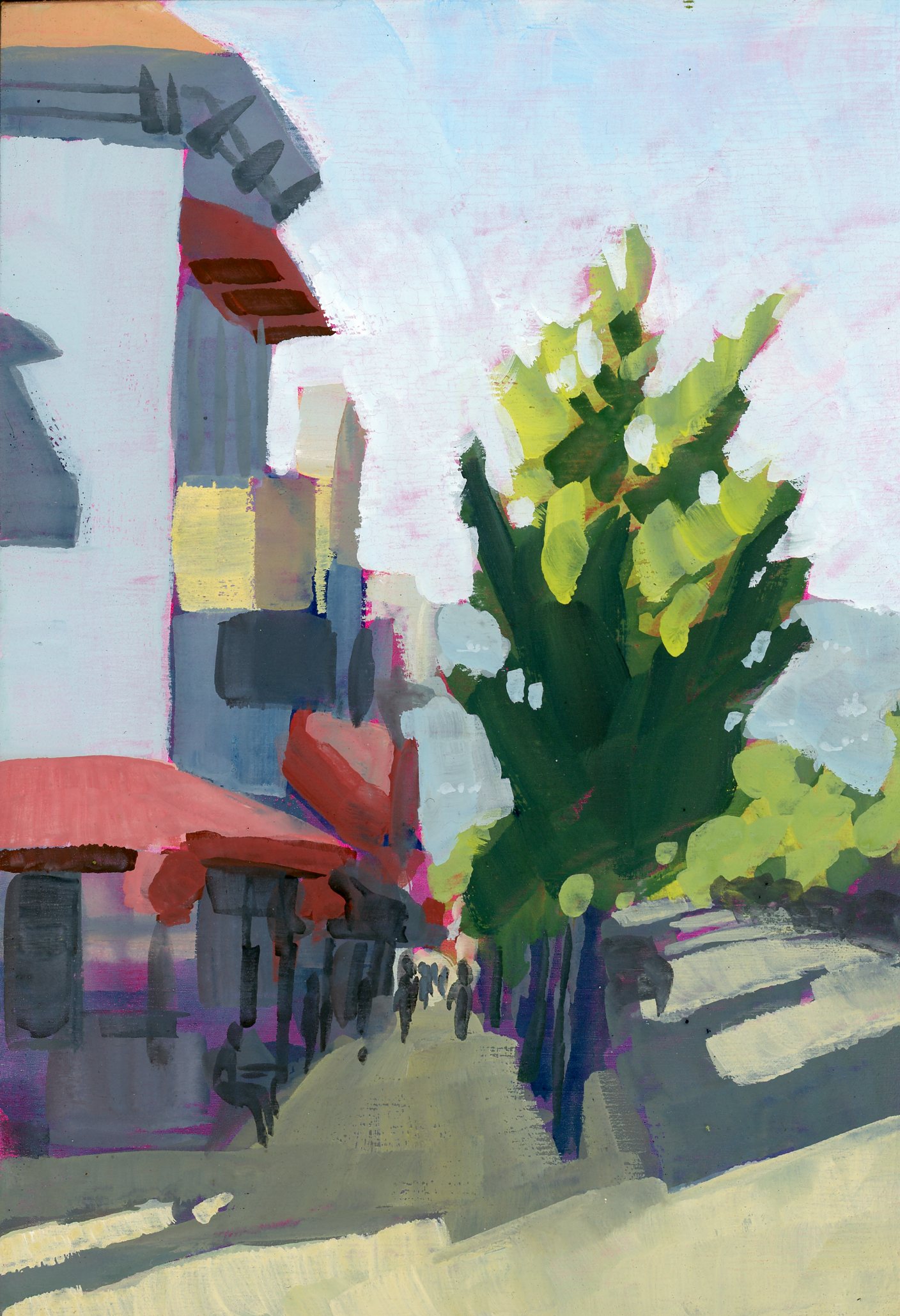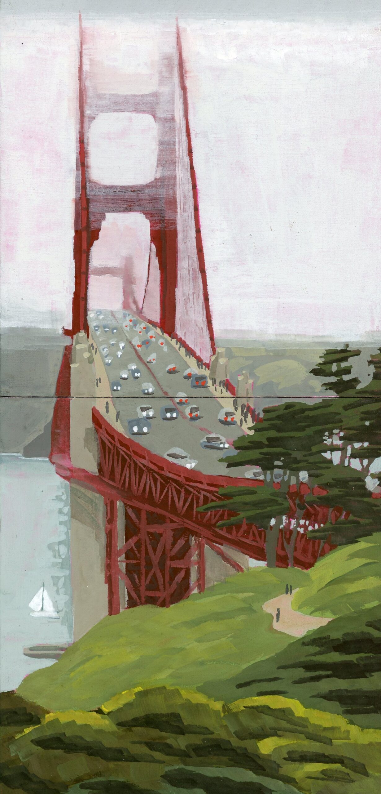 My paintings explore and celebrate the natural and built environments of the San Francisco Bay Area through simplification, light, and atmosphere. Most are painted en Plein Air with gouache. The first set of paintings are available, I also accept commissions for locations around the Bay Area.